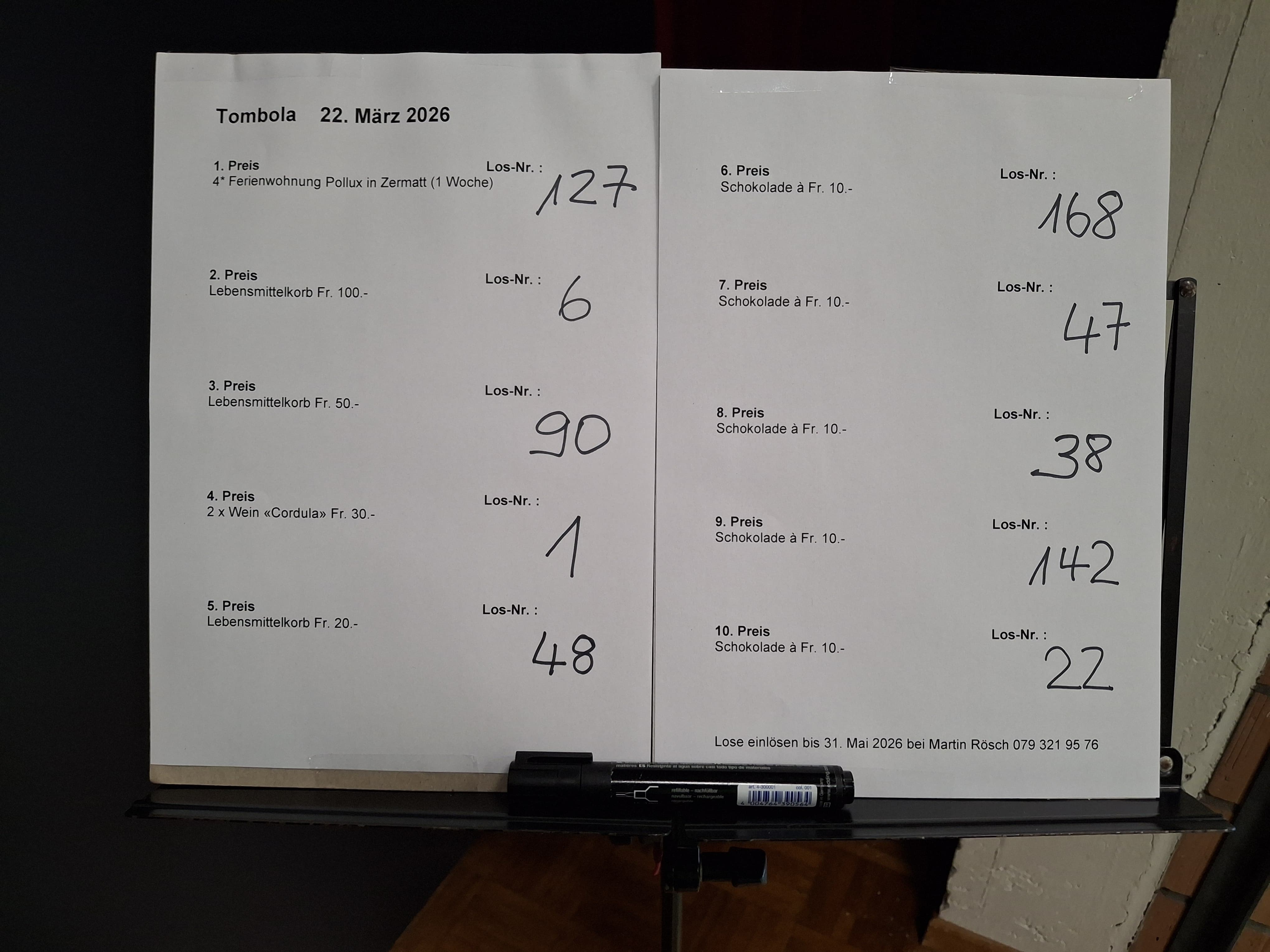 Ergebnis Auslosung am Frühlingskonzert vom 22.03.26 MZH Port